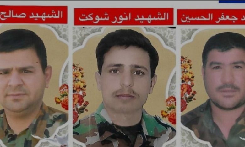 وقالت الهيئة في بيان اطلعت عليه ألاولى نيوز ، إن “هيئة الحشد الشعبي تزف الشهداء جعفر حسن أصغر، وصالح ولي علي، و نور شوكت خليل الذين نالوا وسام الشهادة خلال تصديهم لهجوم إرهابي جنوب غرب كركوك”.
