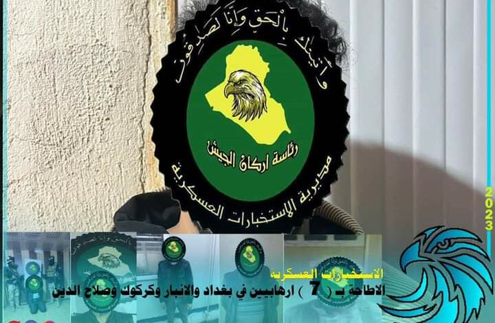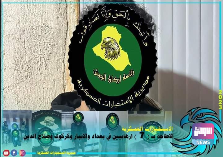 أعلنت مديرية الاستخبارات العسكرية، اليوم الاحد، الإطاحة بـ(7) إرهابيين في بغداد والأنبار وكركوك ونينوى.