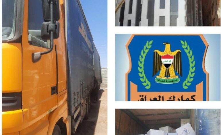 وذكر بيان للهيئة تلقته (الاولى نيوز )، أن “قسم التحري و مكافحة التهريب في مديرية جمرك المنطقة الغربية، تمكن من ضبط (8) شاحنات فيها (لاصق سيراميك و سجاد ميكانيكي و حلويات وثلاجات واثاث وهياكل خشبية لدعم الخرسانة) مخالفة للضوبط والشروط الاستيرادية”.