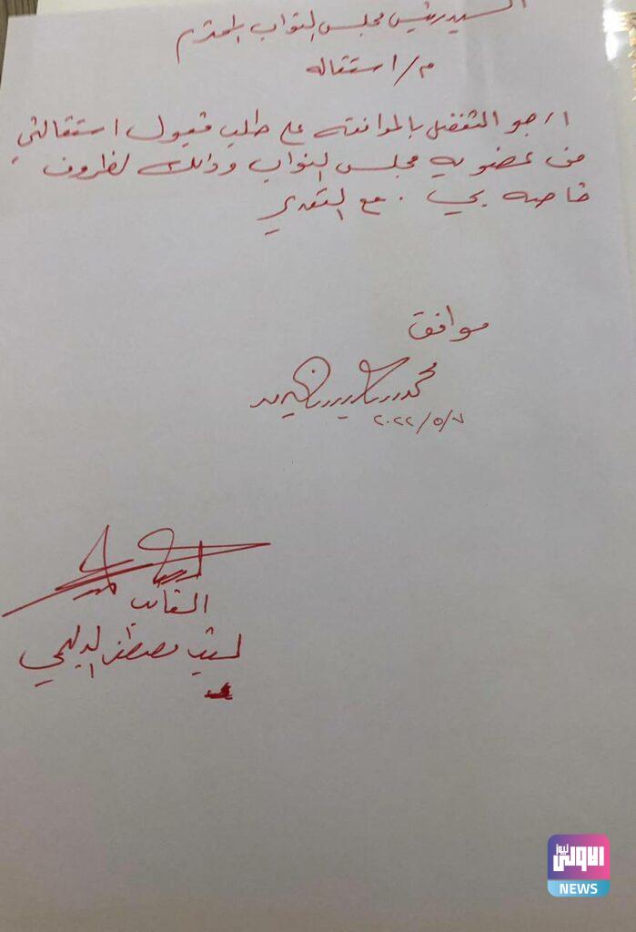 وجاء في طلب استقالة الدليمي “ارجو التفضل بالموافقة على طلب قبول إستقالتي من عضوية مجلس النواب وذلك لظروف خاصة بي “.