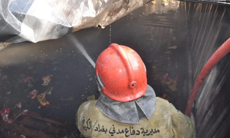الدفاع المدني يخمد حريق في سوق البياع