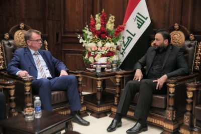 وذكر بيان لمكتبه الاعلامي تلقت /الاولى نيوز/، نسخة منه، ان “الكعبي استقبل السفير الالماني الجديد اوله دييل، ورد الكعبي على تساؤل السفير حول مصير قوات حلف الناتو وبعض الدول الاخرى بالعراق قائلا: ان “قرار مجلس النواب الاخير الخاص بإجلاء القوات الاجنبية بشكل كامل جاء بعد سلسلة من الخروقات للسيادة العراقية و التصرفات المنفردة والمنفلتة للقوات الاميركية داخل البلاد” .