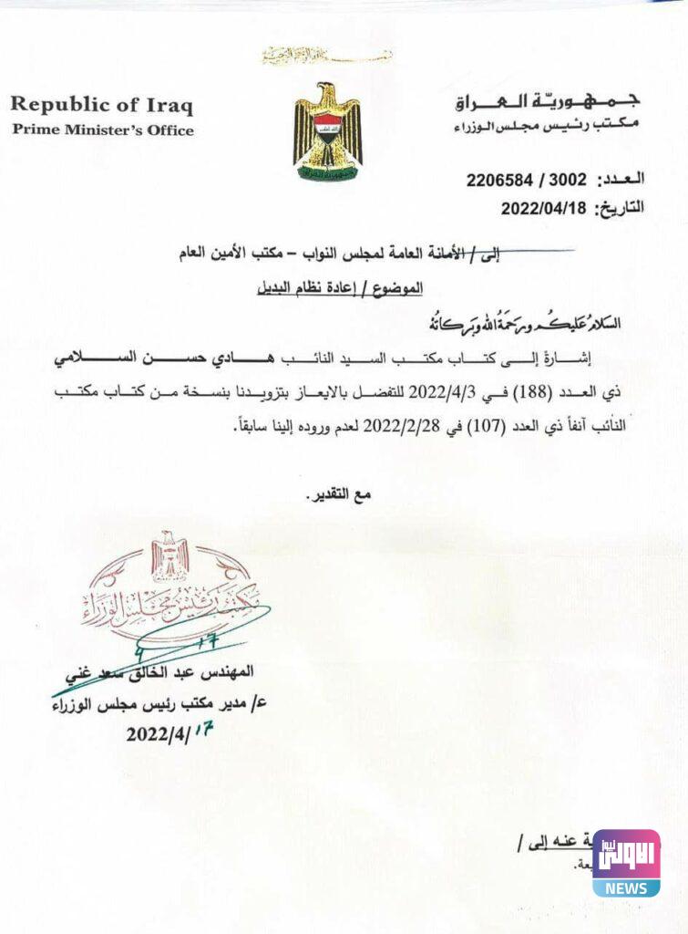 النائب هادي السلامي: إعادة نظام البديل لكافة الفرق العسكرية بالتدريج (وثائق)