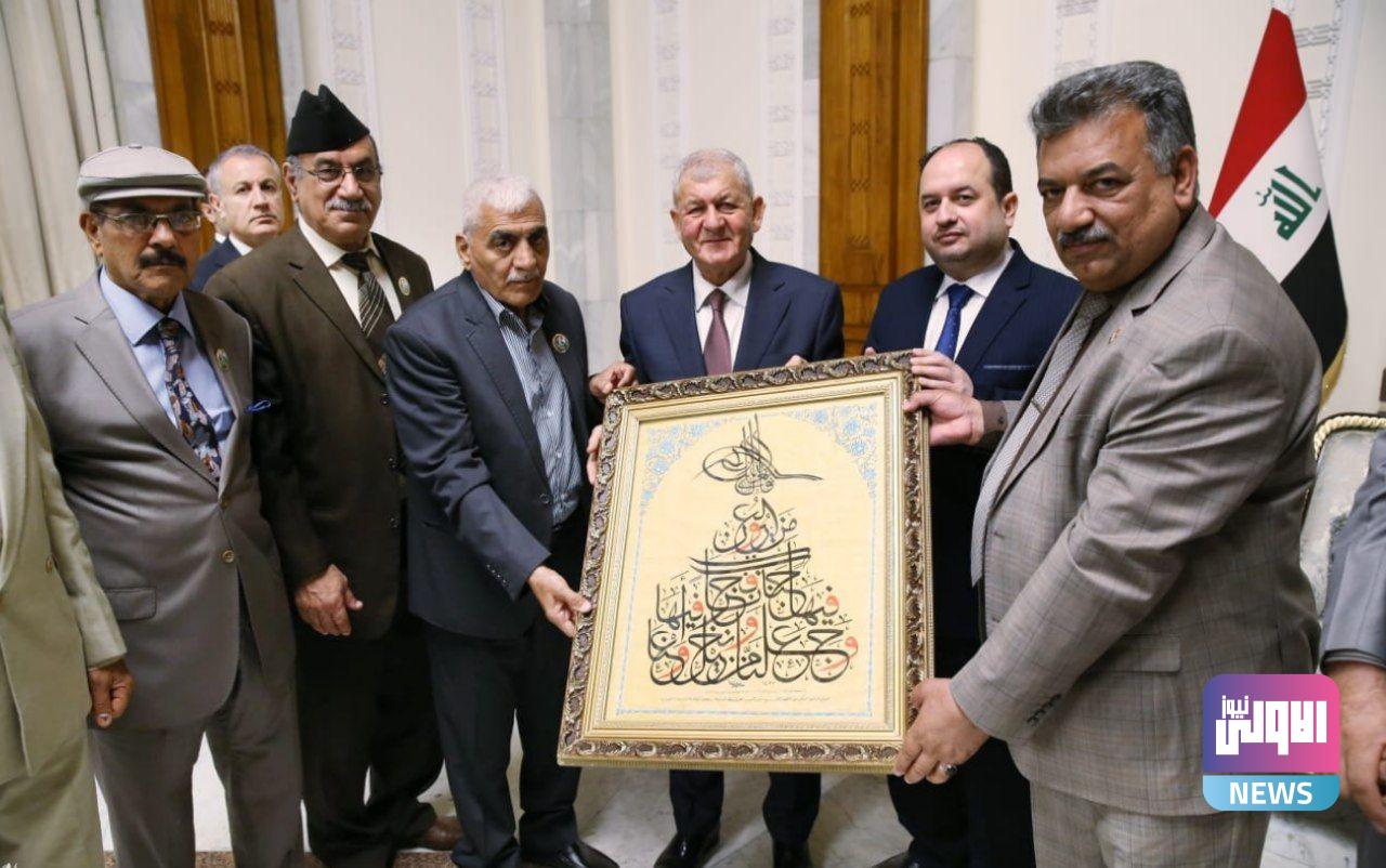 وذكر بيان لرئاسة الجمهورية تلقته (الاولى نيوز )، أن “رئيس الجمهورية عبد اللطيف جمال رشيد، استقبل اليوم في قصر بغداد، وفد تجمع خطاطي العراق برئاسة عبد المنعم خيري حسين”.