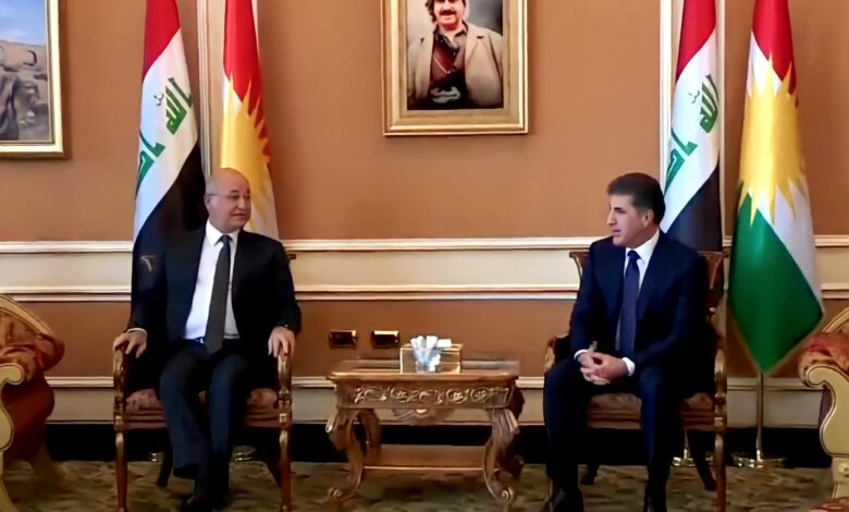 وأضاف البيان ان “رئيس إقليم كردستان نيجيرفان بارزاني كان في استقبال صالح بمطار أربيل”.