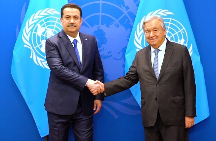 وذكر المكتب الاعلامي لرئيس الوزراء في بيان تلقته (الاولى نيوز)، أن “رئيس مجلس الوزراء محمد شياع السوداني، التقى مساء الجمعة، الأمين العام لمنظمة الأمم المتحدة أنطونيو جوتيريش، بمقرّ المنظمة في نيويورك، وذلك على هامش مشاركة سيادته في اجتماعات الجمعية العامة للأمم المتحدة الـ 78”.