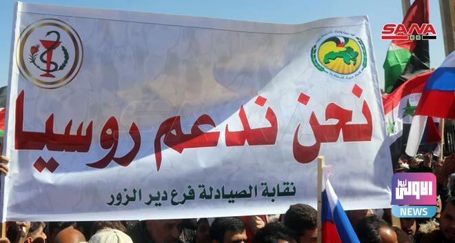 سوريا تجمع شعبي في دير الزور تضامنا مع روسيا