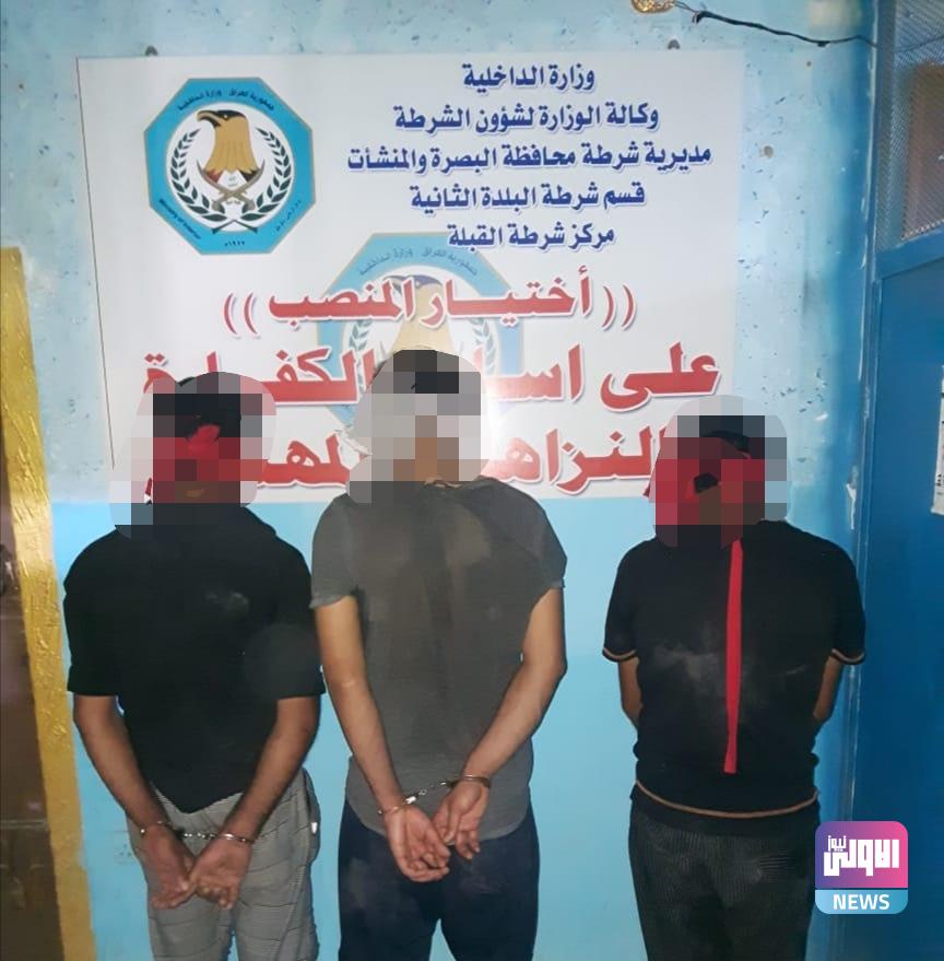 شرطة البصرة :القاء القبض على ثلاثة متهمين بعد ٦ ساعات من ارتكابهم جريمة قتل في القبلة
