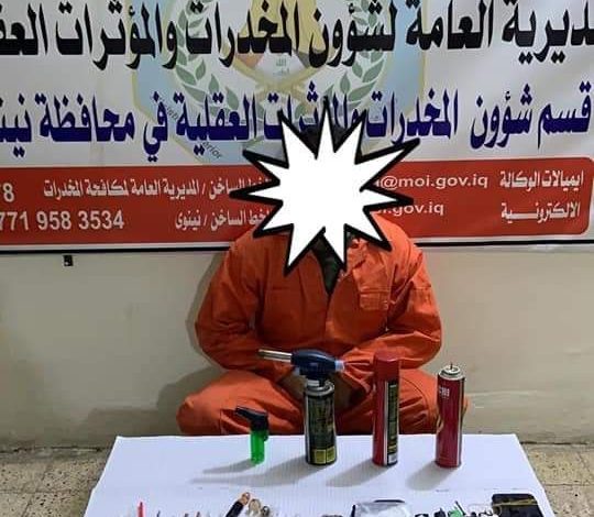 شرطة نينوى تلقي القبض على متهم بحوزته مواد مخدرة وادوات تعاطي