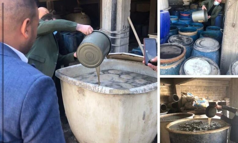 قوة أمنية مشتركة وفرق صحية تداهم معملاً للمخللات في بغداد وتتلف عشرات الأطنان من بضاعته