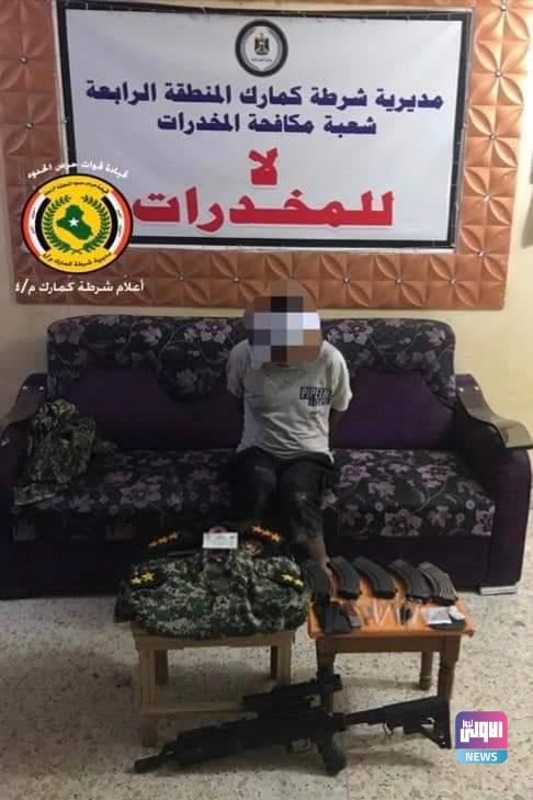 تمكنت مفارز شعبة مكافحة المخدرات التابعة لمديرية شرطة كمارك المنطقة الرابعة من القاء القبض على متهم ينتحل صفة ضابط بحوزته سلاح غير مرخص ومواد مخدرة وأدوات تعاطي،