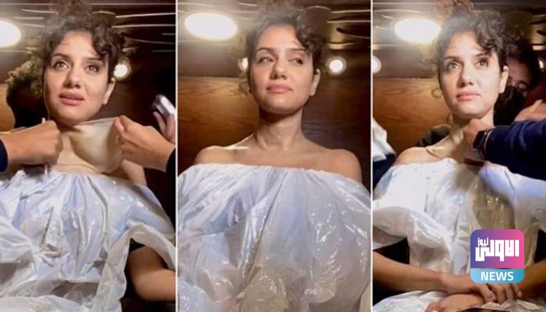 وظهرت جيهان الشماشرجي في الفيديو وهي تضع بعض المواد التجميلية على رقبتها حتى تظهر وكأنها تم ذبحها كما حدث في المسلسل.