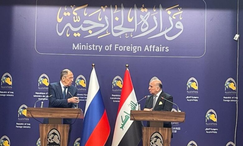 وقال وزير الخارجية الروسي سيرغي لافروف في مؤتمر صحفي عقده مع وزير الخارجية فؤاد حسين بمقر الوزارة في بغداد وتابعته (الاولى نيوز)، “إننا بحثنا العلاقات الثنائية بين بغداد وموسكو والفرص الاستثمارية، كما قمنا بزيادة الزمالات الدراسية إلى الطلبة العراقيين”.