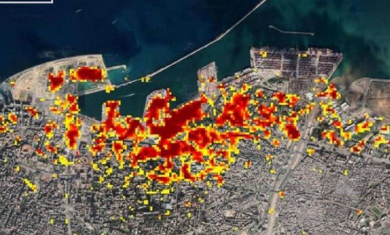 وتُظهر بيانات الرادار الفضائي تغيرات في سطح الأرض قبل وبعد حدث كبير مثل ما يحدث عند وقوع زلزال.وعلى الخريطة المرفقة تمثل النقاط “البيكسلات” الحمراء الداكنة، مثل تلك الموجودة داخل وحول مرفأ بيروت، الضرر الأشد.