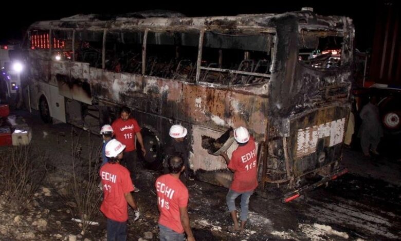 وأوضح وزير الإعلام بإقليم السند شارجيل ميمون، أن الحافلة كانت تقل نحو 50 شخصاً، بينهم صلة قرابة، من مدينة كراتشي بجنوب البلاد إلى مسقط رأسهم في إقليم السند.