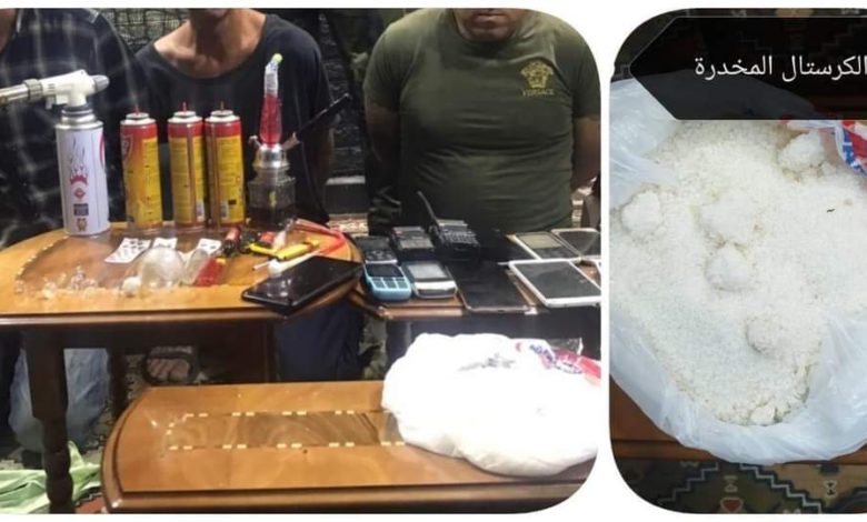 حيث تم القبض عليهم بالجرم المشهود وبحوزتهم ما يقارب كيلو غرام من مادة الكريستال المخدرة، وحبوب مخدرة، ومواد مختلفة تستخدم للتعاطي، حيث تم تدوين أقوالهم وإحالتهم مع المواد المضبوطة الى الجهات المختصة.