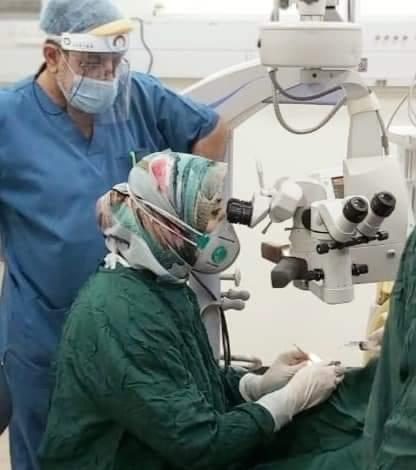 من جهتها اوضحت رئيس الفريق الطبي المشرف على العملية الدكتورة عبير عبد الرزاق الشالجي اختصاص طب وجراحة العيون أن هذا النوع من العمليات يعد من العمليات النادرة والمعقدة نوعا ما ضمن هذا التخصص الطبي الدقيق ،