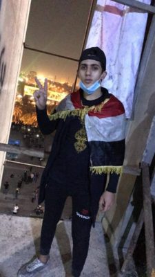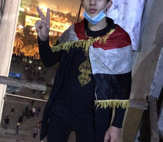 وأضاف الناشطون، “ان المتظاهر علي من سكنة حي القاهرة في بغداد “.