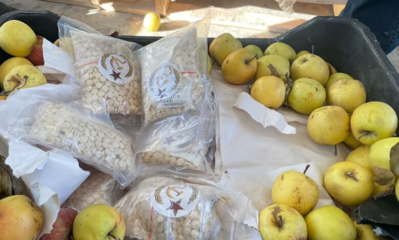 وقالت الهيئة في بيان تلقته (الاولى نيوز): إنه” ضمن سعيها المستمر في محاربة أعداء الوطن وإفشال محاولات استهداف المواطنين الأبرياء، تمكنت هيئة المنافذ الحدودية في منفذ القائم الحدودي بمتابعة مباشرة من اللواء عمر عدنان الوائلي من ضبط كمية كبيرة من (الحبوب المخدرة) تبلغ أكثر من ثلاثة ملايين حبة مختلفة الانواع مخبأة داخل صناديق تحتوي فاكهة التفاح محملة داخل براد”.