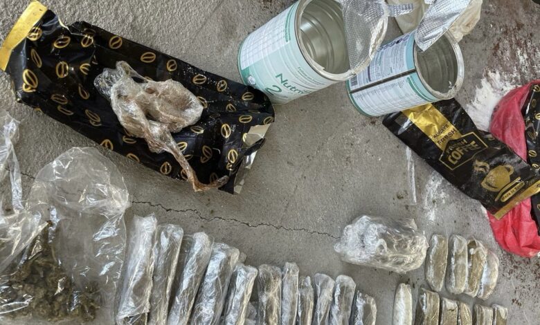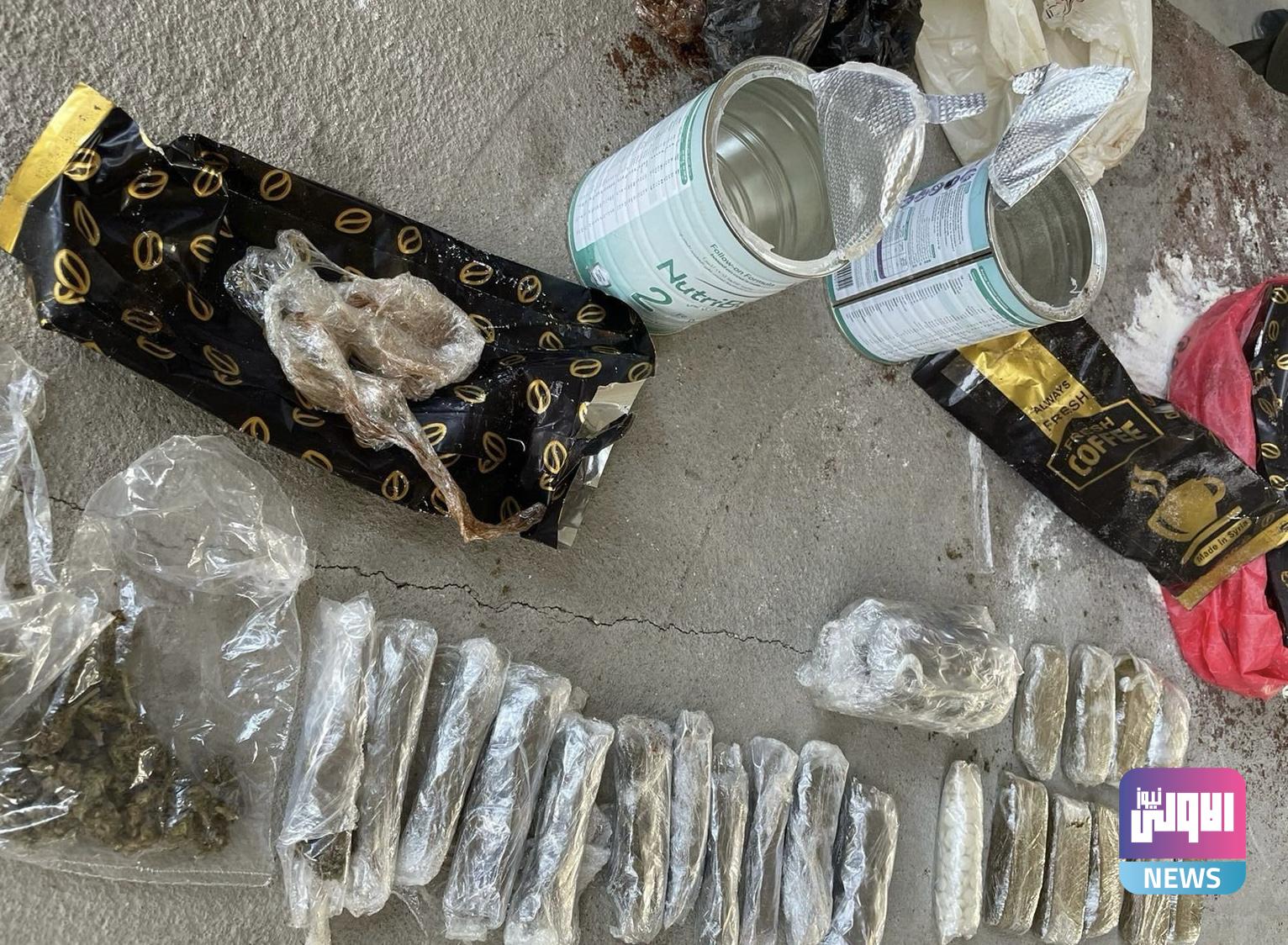 وأضافت، أنه “تم أثناء إجراء التفتيش على باص لمسافرين عائدين من سوريا العثور على (195) حبة و(123) غراما زهرة حشيشة و(320) غراما عجينة حشيشة داخل علب معدنية تحتوي بودرة القهوة مغلفة بالسيليكون لمنع اكتشافها عن طريق خروج الروائح”.