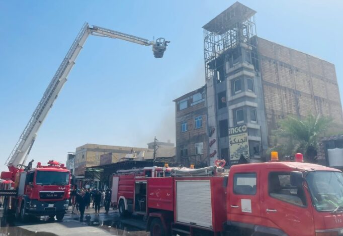 وذكر بيان للمديرية أن “فرق الدفاع المدني اخمدت حادث حريق كبير اندلع داخل بناية تجارية مشيدة من أربعة طوابق متخذة لخزن وتجارة المواد الإنشائية في حي الموظفين”، لافتاً الى أن “الطابق الاخير منها مشيد من ألواح السندويج بنل سريع الاشتعال ومغلفة بالواح الايكوبوند المخالف لتعليمات السلامة”.