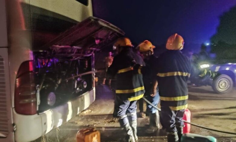وأضافت، “حيث أنهت فرق الدفاع المدني أعمال الإسعاف والإخماد دون تسجيل خسائر بشرية مع تحجيم الأضرار المادية في الحافلة المحترقة”.