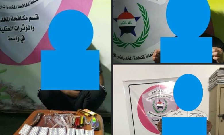 ألقت مفارز قسم مكافحة المخدرات والمؤثرات العقلية في واسط التابعة الى وكالة الوزارة لشؤون الشرطة، القبض على 3 متهمين مطلوبين وفق المادة 28 و 32 مخدرات، وتم اتخاذ الإجراءات القانونية بحقهم وإحالتهم الى القضاء لينالوا جزاءهم العادل .