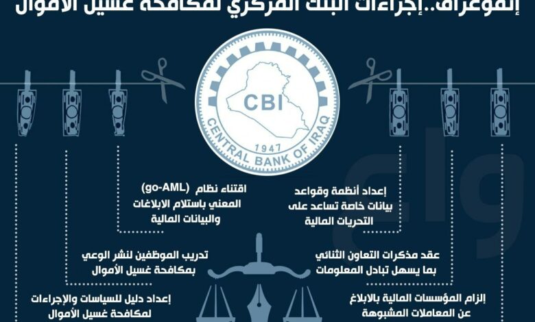 الرئيسية/المحلية/إنفوغراف.. إجراءات البنك المركزي العراقي لمكافحة غسيل الأموال المحلية إنفوغراف.. إجراءات البنك المركزي العراقي لمكافحة غسيل الأموال Manager Awla2022-07-01 أقل من دقيقة فيسبوك X واتساب تيلقرام مشاركة عبر البريد Manager Awla2022-07-01 أقل من دقيقة فيسبوك X واتساب تيلقرام مشاركة عبر البريد