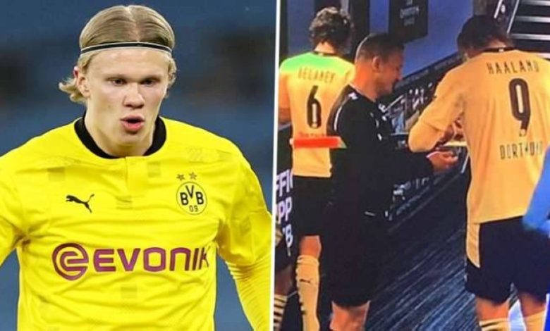 لطلبه توقيع هالاند..إيقاف حكم مباراة السيتي ودورتموند