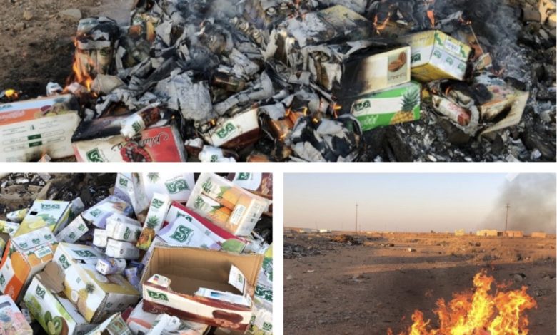 وقالت الهيئة في بيان تلقت (الأولى نيوز) ، نسخة منه، ان “مفارز مركز جمرك طريبيل الحدودي المحاذي للجانب الأردني قام باتلاف ارسالية لعصير الفواكه المستورد كونها منتهية الصلاحية “.