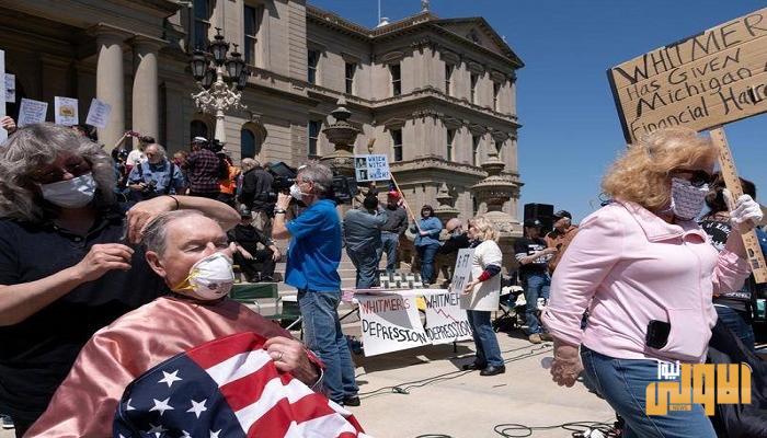 احتج مئات المتظاهرين في ميشيجان الأمريكية على أوامر البقاء في المنازل، من خلال تنظيم تجمع لقص الشعر أمام مبنى الكابيتول في الولاية.