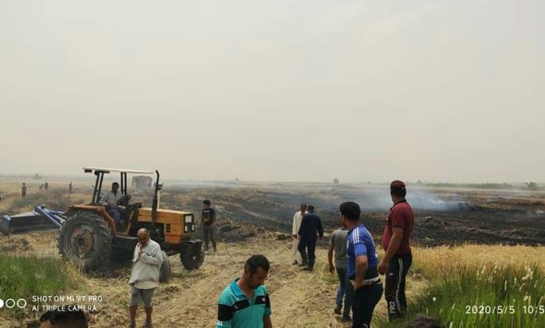 احتراق أكثر من 400 دونم من مزارع الحنطة في مدينة المشخاب محافظة النجف