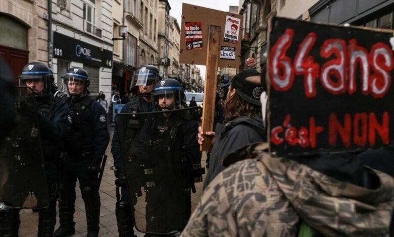 ارتفع عدد المعتقلين خلال الاحتجاجات التي شهدتها العاصمة الفرنسية باريس، أمس الاثنين، بسبب تبني إصلاح نظام التقاعد، إلى 171 شخصاً.