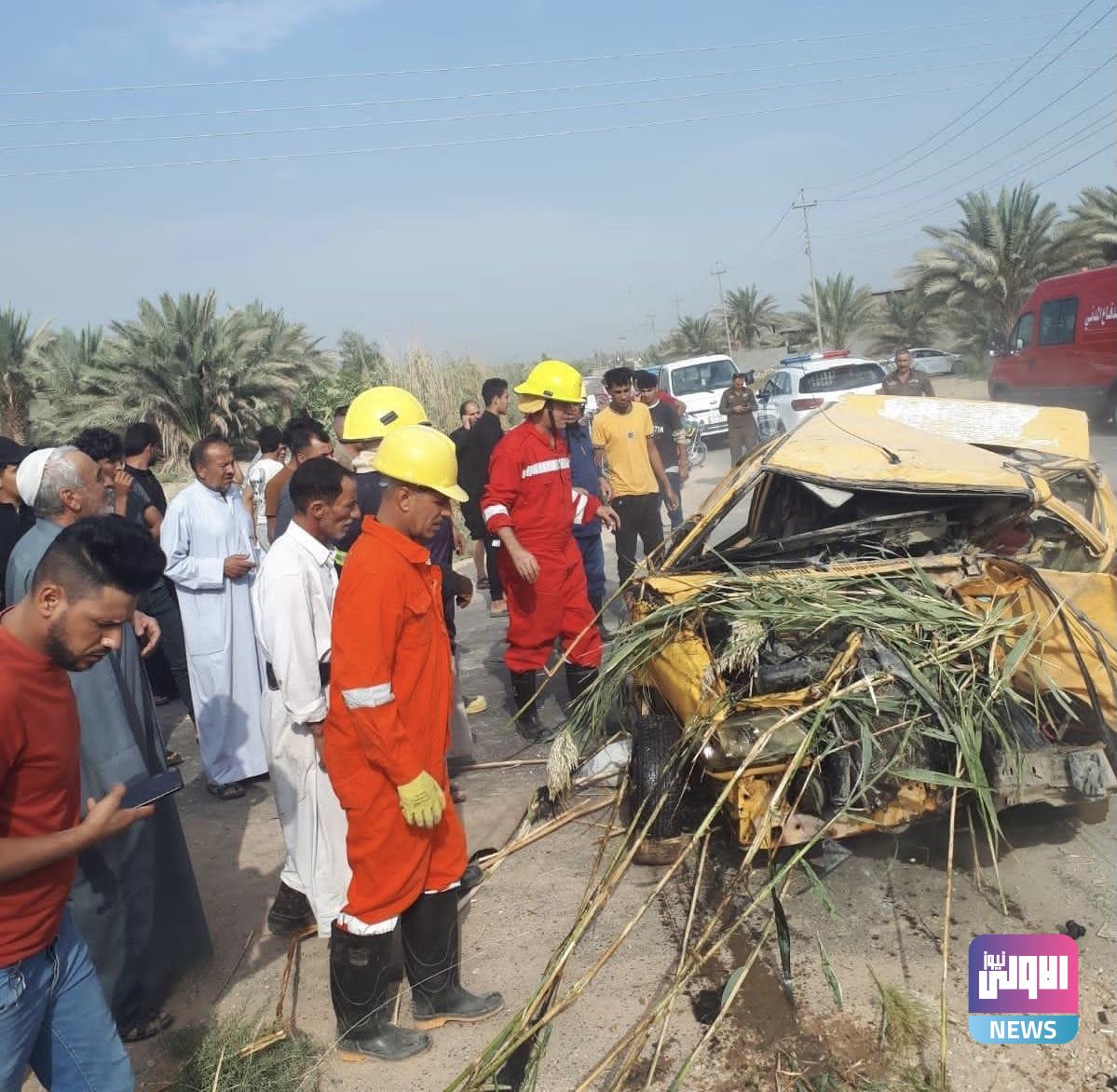 استنفار لإخراج ’سايبا’ سقطت في مشروع مائي بعد حادث تصادم بكربلاء (صور)