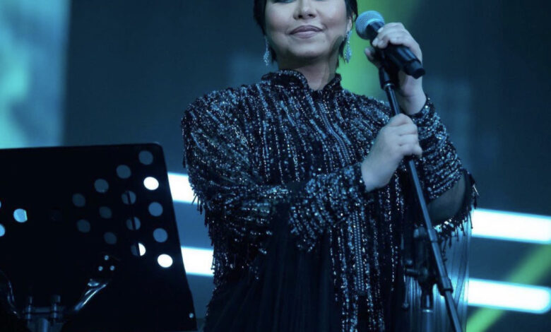 اطلالة شيرين عبد الوهاب خلال حفلتها في ابو ظبي بفستان من رامي سلمون