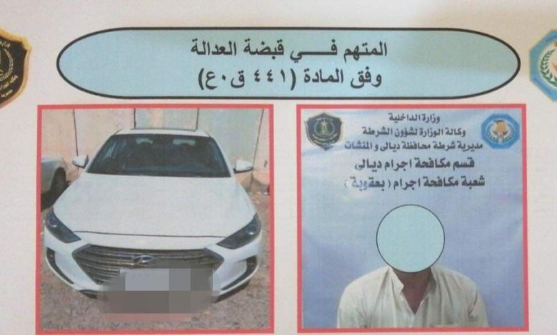 كشف قائد شرطة ديالى اللواء حامد الشمري، الثلاثاء، عن اعتقال لص تورط ب9 جرائم سرقة في المحافظة.