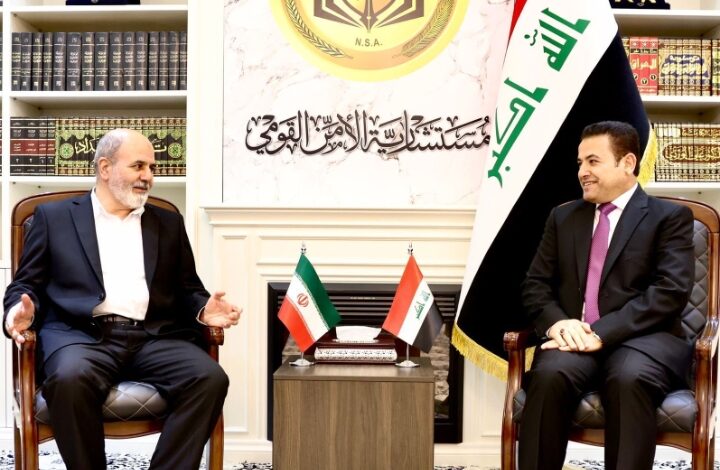 وقال المكتب الإعلامي لمستشار الأمن القومي في بيان تلقته (الاولى نيوز)، ان “مستشار الأمن القومي قاسم الأعرجي استقبل، بمكتبه اليوم، أمين المجلس الأعلى للأمن القومي الإيراني علي أكبر أحمديان والوفد المرافق له، بحضور السفير الإيراني في بغداد محمد كاظم آل صادق”، مبينا ان “اللقاء شهد استعراض مجمل الأوضاع السياسية والأمنية في المنطقة، إلى جانب بحث تعزيز وتمتين العلاقات بين العراق وإيران وعلى كافة الصعد”.