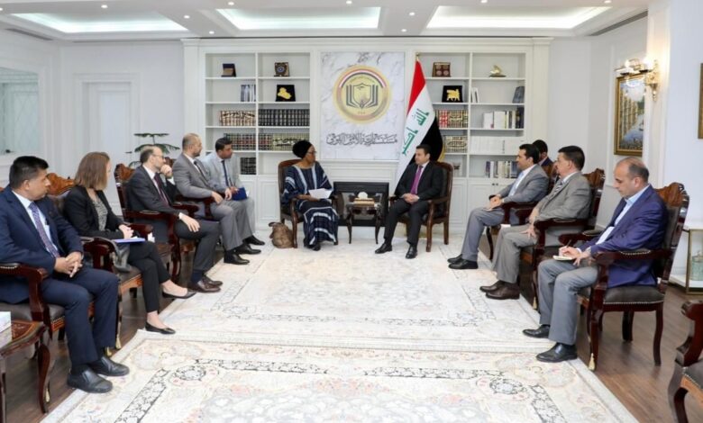 بحث مستشار الأمن القومي، قاسم الأعرجي، اليوم الثلاثاء، مع نائب المدير العام لمنظمة الهجرة الدولية، اوغوشي دانيلز سبل دعم استراتيجية مكافحة التطرف العنيف.