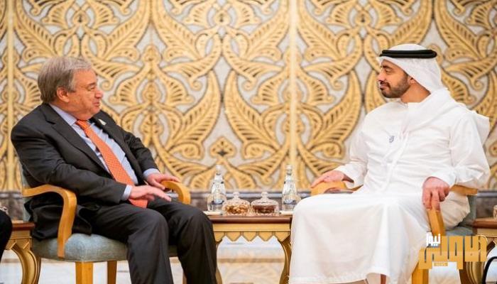 وبحث الشيخ عبدالله بن زايد آل نهيان مع جوتيريس، خلال الاتصال، التعاون المشترك وسبل دعم وكالة غوث وتشغيل اللاجئين الفلسطينيين “الأونروا”.