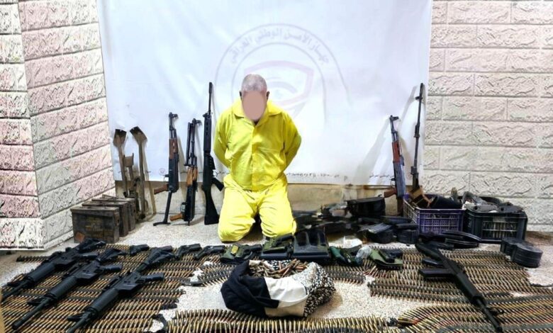 وأضاف “بعد مراقبة مستمرة لهذا الهدف وتحديد موقعه، استدرجت مفارز الجهاز التاجر وألقت القبض عليه بالجرم المشهود”، مبيناً أنه “تم ضبط 17 نوع سلاح مختلفاً وأكثر من 4000 طلق ناري بحوزته كان يروم المتاجرة بها”.