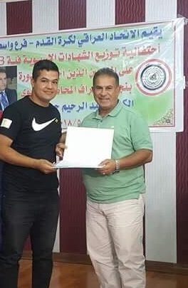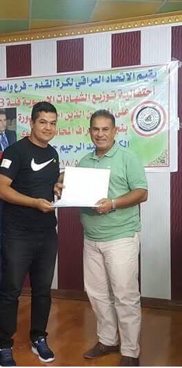 اقام الاتحاد العراقي لكرة القدم فرع واسط احتفالية على قاعة كلية التربية البدنية وعلوم الرياضة في جامعة واسط بحضور عدد من المختصين والاكاديميين ، بمناسبة منح الاتحاد الاسيوي لكرة القدم الشهادات التدريبية لفئة/ B / الخاصة بمدربي اندية المحافظة.