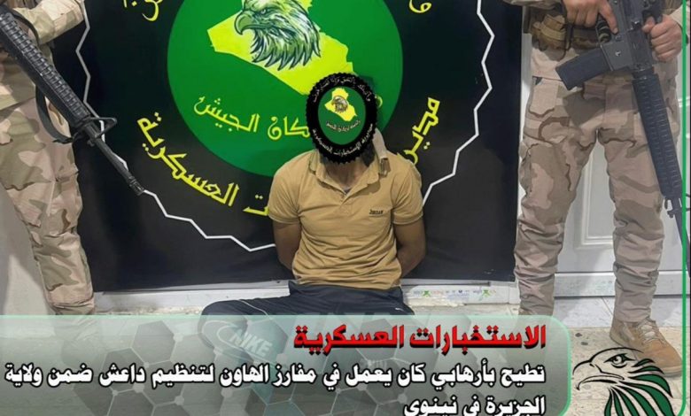 أعلنت مديرية الاستخبارات العسكرية، اليوم الثلاثاء، الاطاحة بإرهابي كان يعمل في مفارز الهاون لداعش بنينوى.