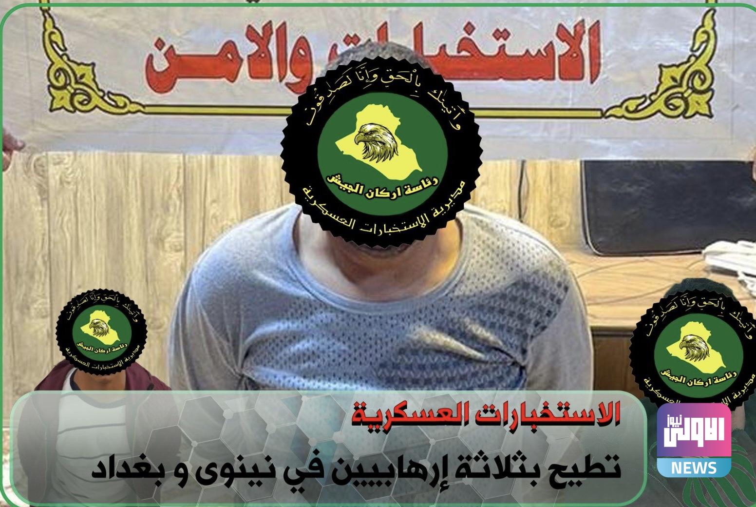 أعلنت مديرية الاستخبارات العسكرية، اليوم الاثنين، الاطاحة بثلاثة إرهابيين في نينوى وبغداد.