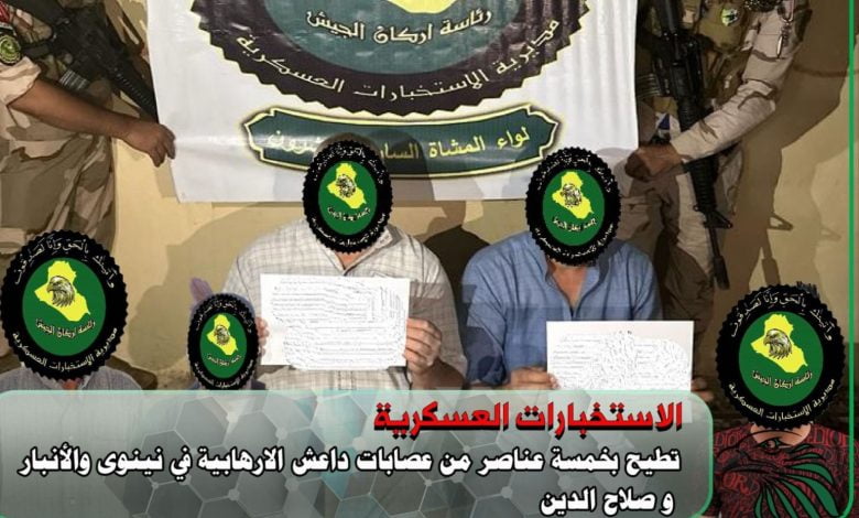 الاستخبارات العسكرية تطيح بخمسة إرهابيين في نينوى والأنبار وصلاح الدين