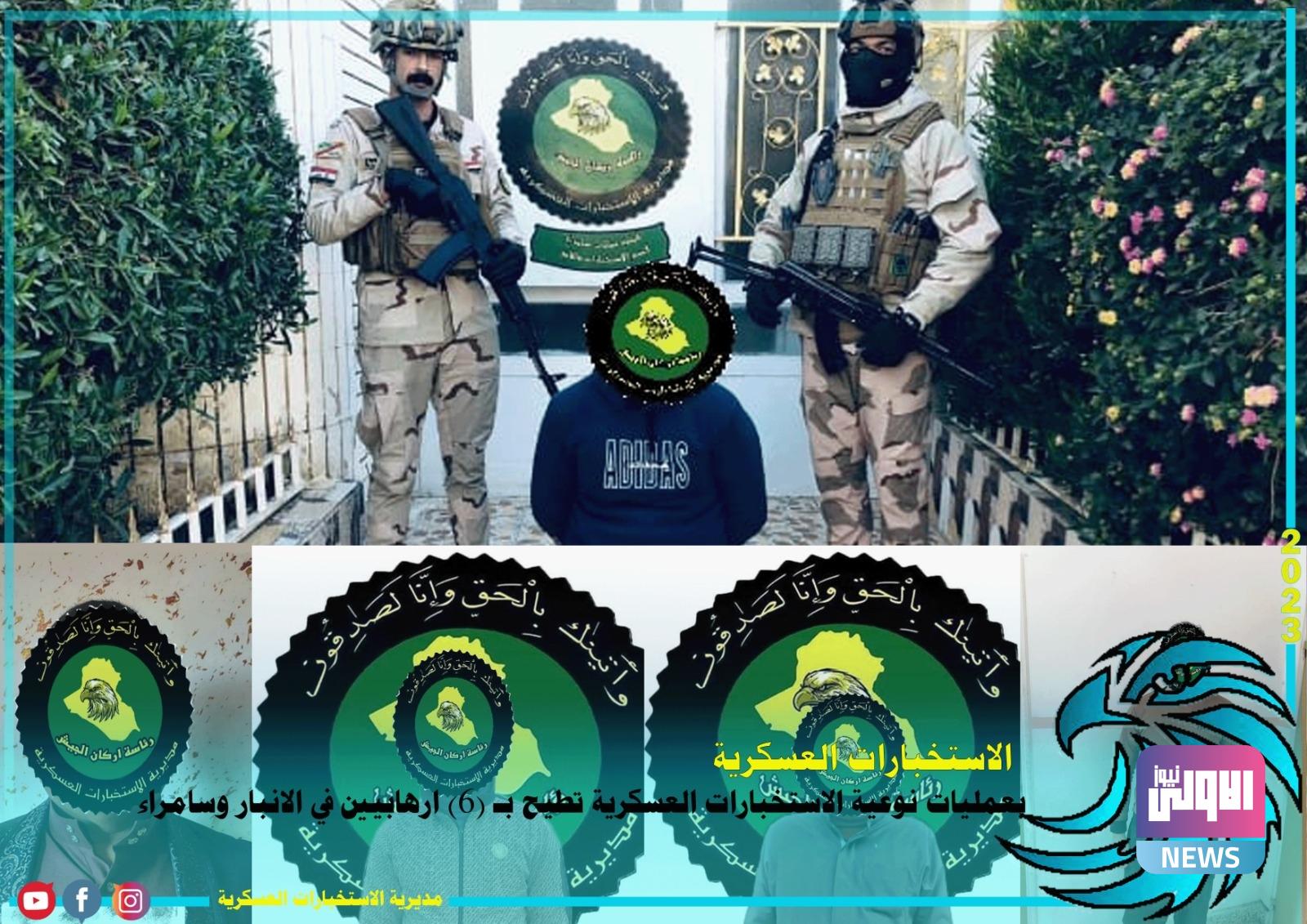 أعلنت مديرية الاستخبارات العسكرية التابعة لوزارة الدفاع، اليوم الثلاثاء، الإطاحة بستة إرهابيين في الأنبار وسامراء.