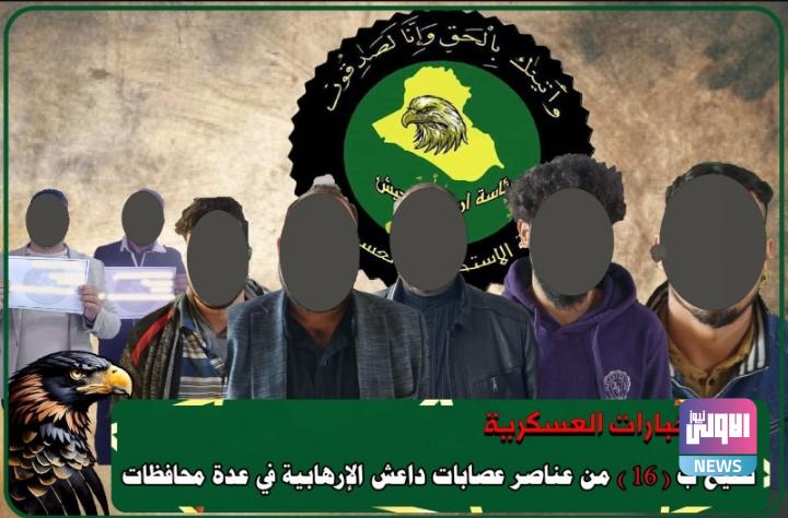 أعلنت مديرية الاستخبارات العسكرية، اليوم الثلاثاء، عن الإطاحة بـ16 عنصراً بعصابات داعش الإرهابية في عدة محافظات.