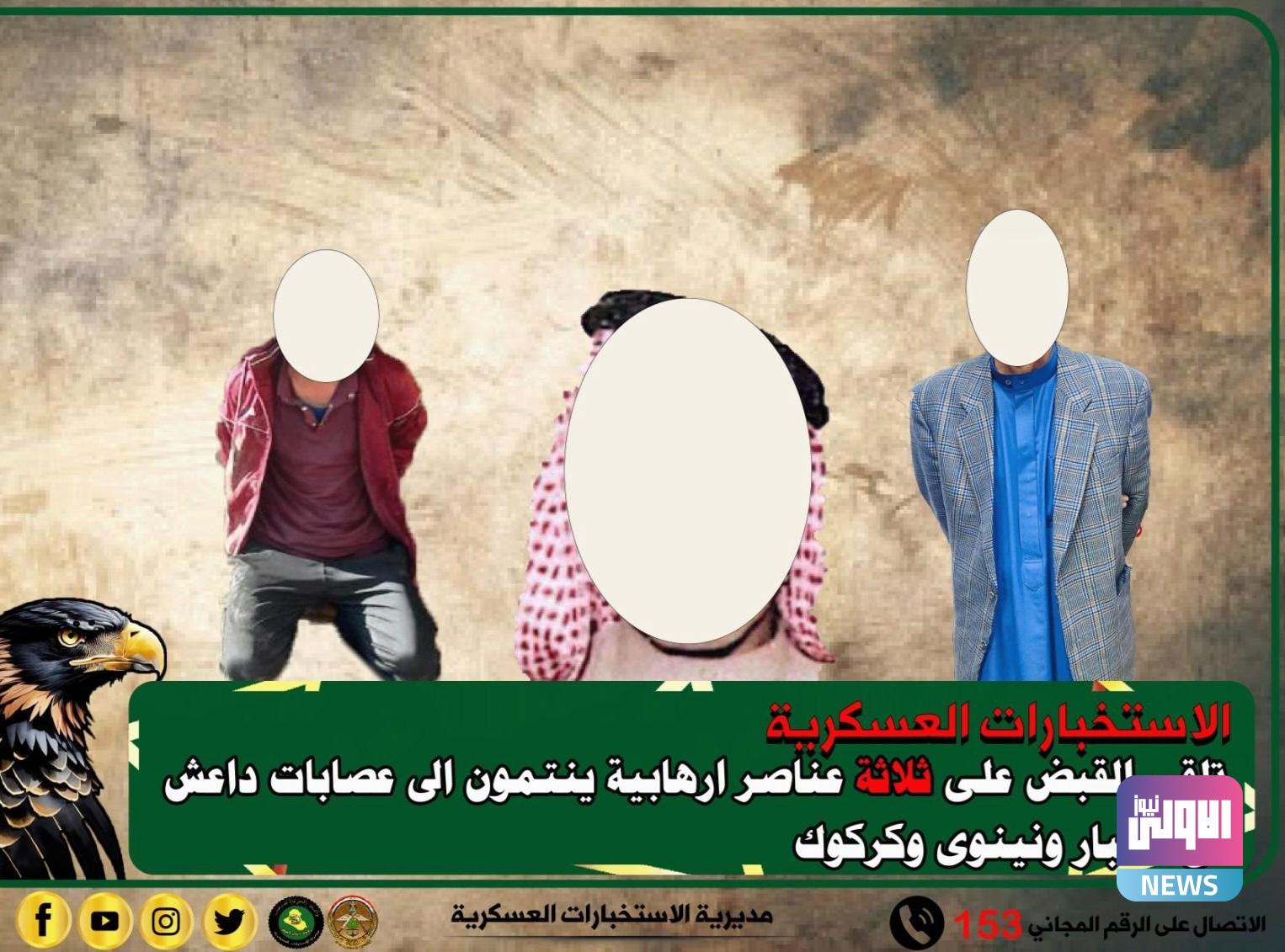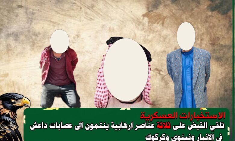 الاستخبارات العسكرية تلقي القبض على ثلاثة عناصر إرهابية بثلاث محافظات