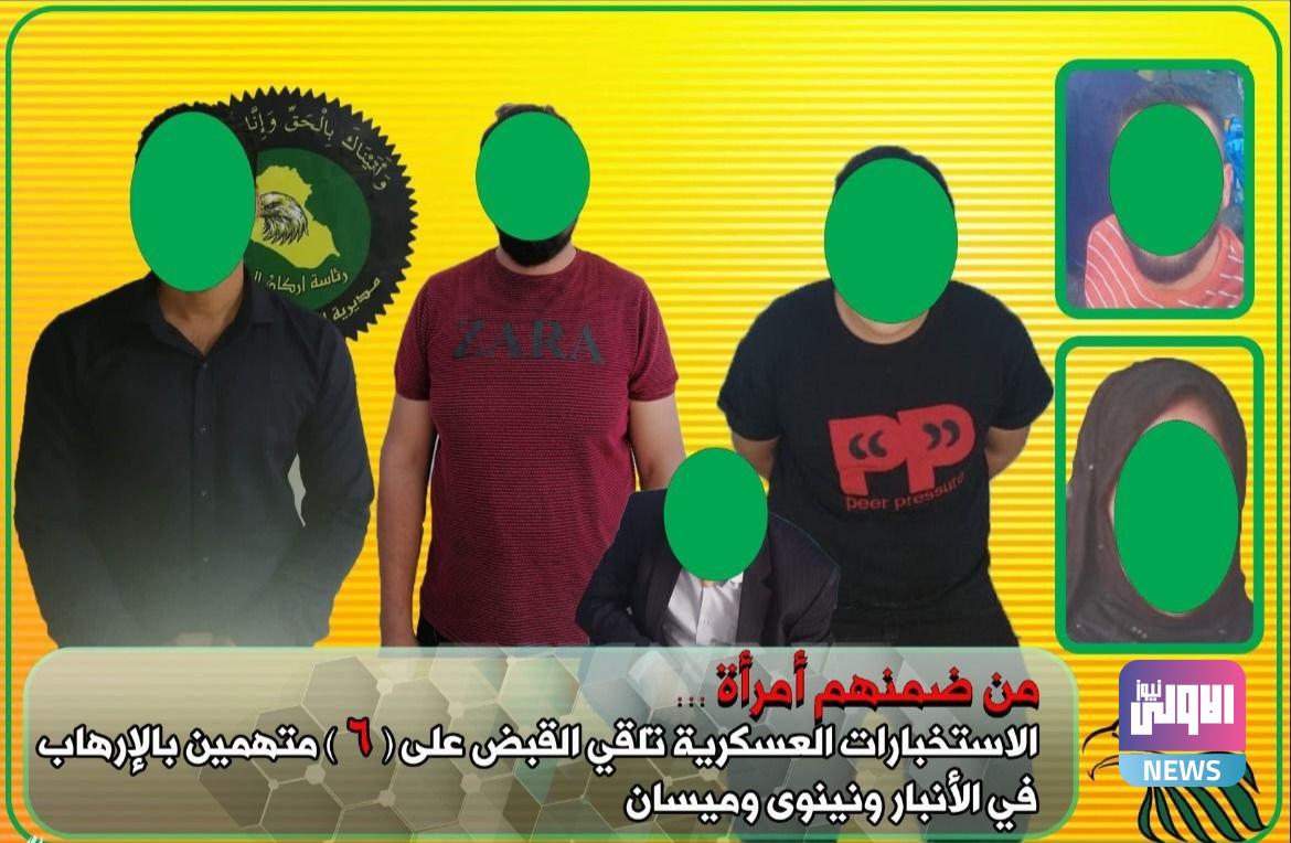 أعلنت مديرية الاستخبارات العسكرية، اليوم الاثنين، عن القاء القبض على 6 متهمين بالإرهاب في الأنبار ونينوى وميسان.