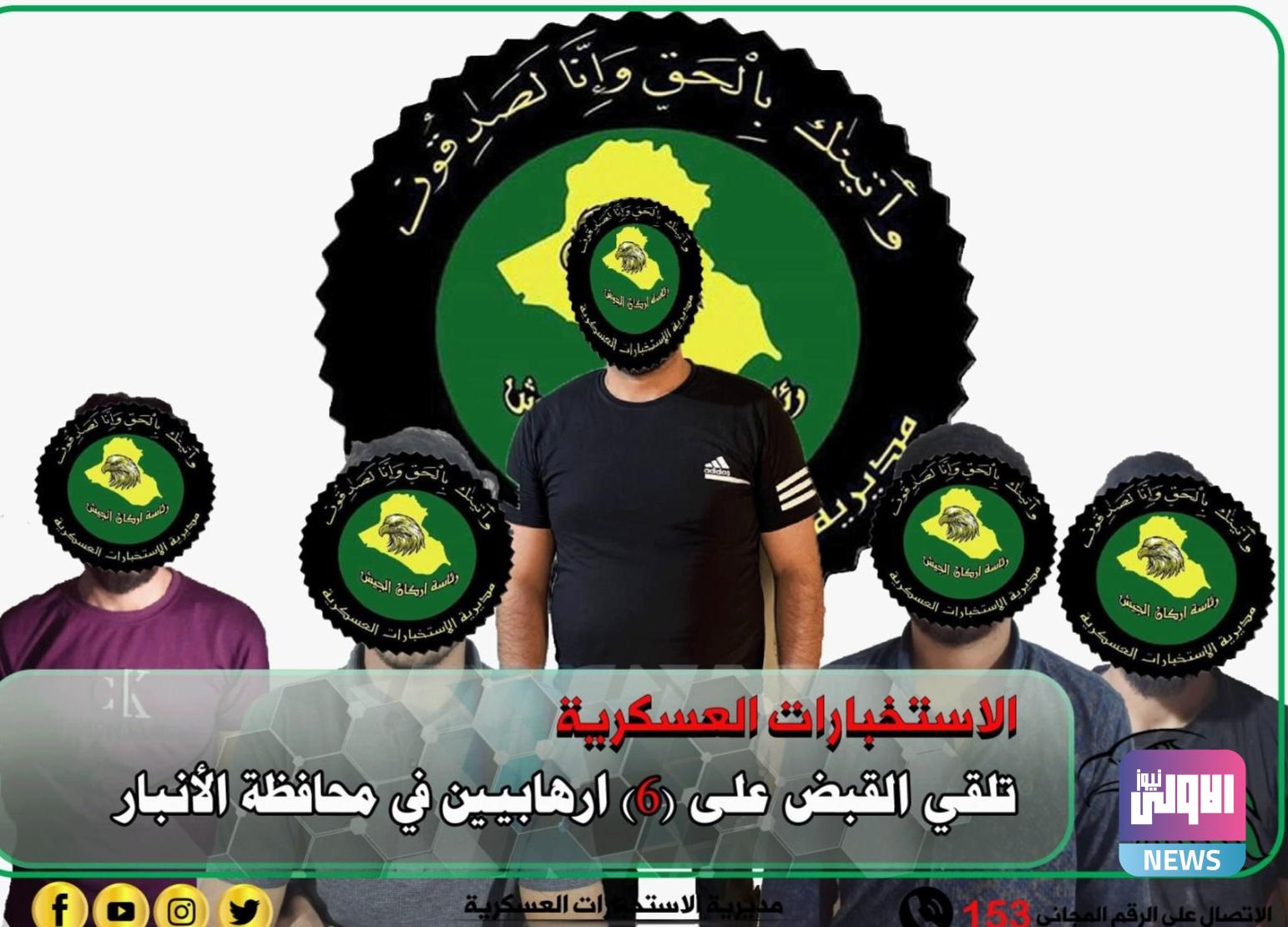 أعلنت مديرية الاستخبارات العسكرية، اليوم الاثنين، عن إلقاء القبض على 6 إرهابيين في محافظة الأنبار.