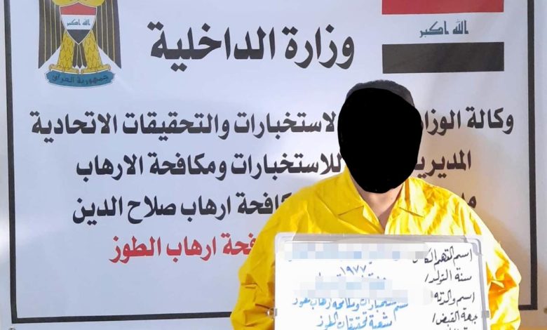 وأضافت، أنه “من خلال التحقيقات الأولية معه اعترف بانتمائه لتلك العصابات الإجرامية ونفذ اكثر من (٢٢) عملية إرهابية ومنها هجوم على دور المواطنين وتفجيرها وقتل العديد منهم و استهداف منتسبي الأجهزة الأمنية، كما واشترك في اغتيال اثنين من أعضاء المجلس المحلي في قضاء الطوز والهجوم على مركز شرطة ينكجة”.